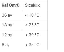• Çocuklardan uzak tutunuz. • Direkt güneş ışığına maruz bırakmayınız. • Kuru ve serin yerde (oda sıcaklığında) muhafaza ediniz.