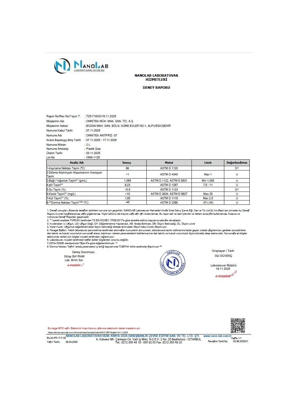 Omnitek Mavi İnorganik Antifriz, motor soğutma sistemleri için geliştirilmiş, yüksek hacimli kullanımlara uygun, kullanıma hazır bir antifriz çözümüdür. -37 °C’ye kadar donmaya karşı koruma sağlar ve dört mevsim güvenle kullanılabilir.