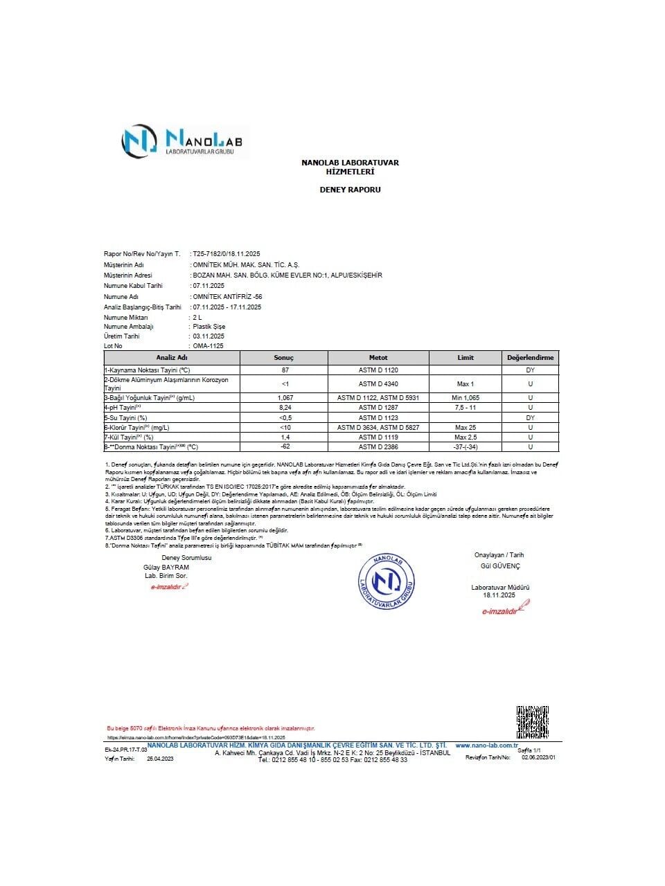 | Test Yöntemi | Refraktometre ile donma noktası ölçümü |