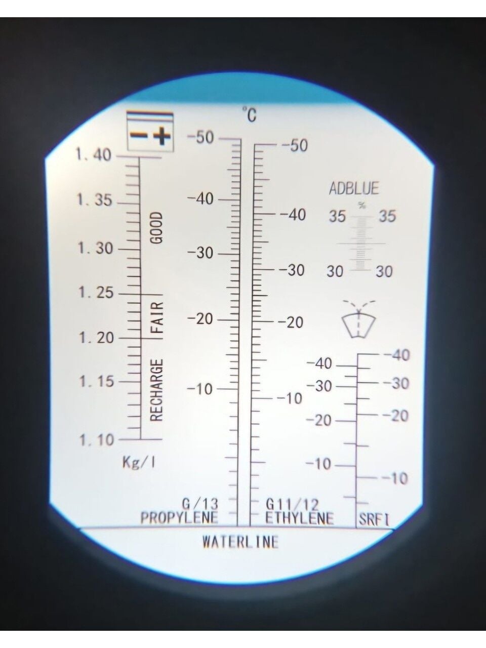Antifriz ve cam suyu gibi ürünlerin donma noktaları refraktometre ile ölçülmektedir. Ürüne ait refraktometre ölçüm görseli ürün sayfasında yer almaktadır.